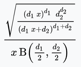 F-분포의 확률밀도함수는 다음과 같이 정의되며 보통 직접 계산하지 않고 미리 만들어놓은 자유도에 따른 F-분포표를 이용합니다.