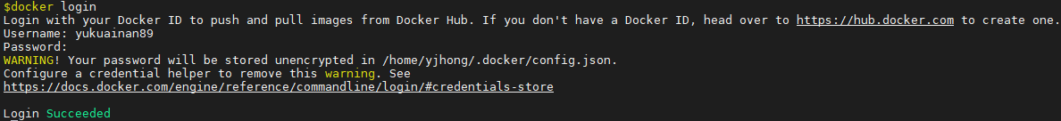 Docker 리포지토리에 업로드하기 위해서는 docker login 명령을 사용하여 로그인합니다.