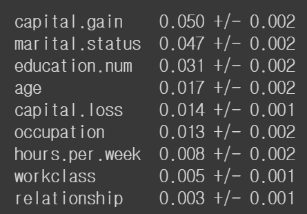 scikit-learn 패키지의 permutation_importance 함수를 통해 쉽게 permutation feature importance를 구할 수 있습니다.