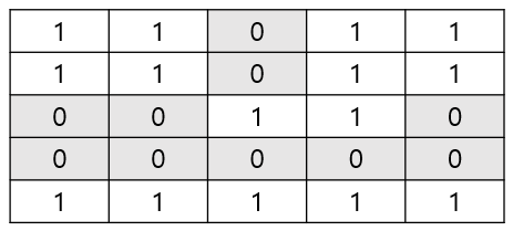 - '1'과 '0'으로 이루어진 중첩 리스트가 입력으로 들어온다고 가정한다.