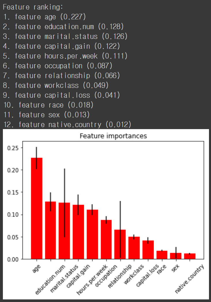 파이썬에서는 sklearn 패키지를 이용해 쉽게 feature importance 를 구하고 시각화할 수 있습니다.