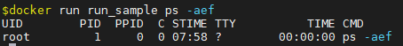 하지만 docker container run 구문을 통해 현재 시스템에서 돌아가는 프로세스를 확인하는 ps -aef 명령을 주었을 때는 기존 CMD 명령이 생략되고 컨테이너 실행 시 받은 인자가 실행됩니다.