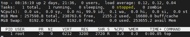 응용하여 "docker run run_sample -d 2" 를 수행하면 기존 CMD 명령으로 설정한 명령 인수가 덮어져 top 명령을 2초마다 갱신합니다.