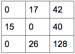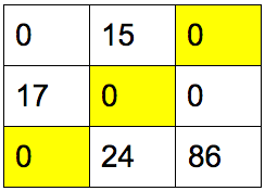 먼저 처음 cost table 에서 각 행의 최소값을 각 행에 대해 빼줍니다.