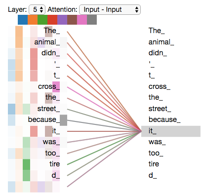 Self-attention 이란 무엇일까요? "self" 라는 말에서 알 수 있듯이 자기 자신에 대해 주목한다는 뜻일겁니다. 즉, 하나의 문장에 대해서 각 위치의 단어 별로 어느 위치의 단어와 연관이 있는지 파악하겠다는 것이죠. 예를 들어, "The animal didn't cross the street because it was too tired." 라는 문장이 있을 때 "it" 이 "animal" 을 나타낸다는 것은 사람은 쉽게 알 수 있지만 컴퓨터는 그러질 못합니다. 따라서 self-attention 을 이용하여 "it" 이 "animal" 과 매우 연관이 있다는 것을 알려주고자 하는 것이죠. 즉, 입력의 특정 위치에 대해서 다른 위치의 값들과의 연관성을 파악하여 해당 위치에 대한 representation 을 잘 추출하고자 하는 것이 self-attention 의 목적입니다.