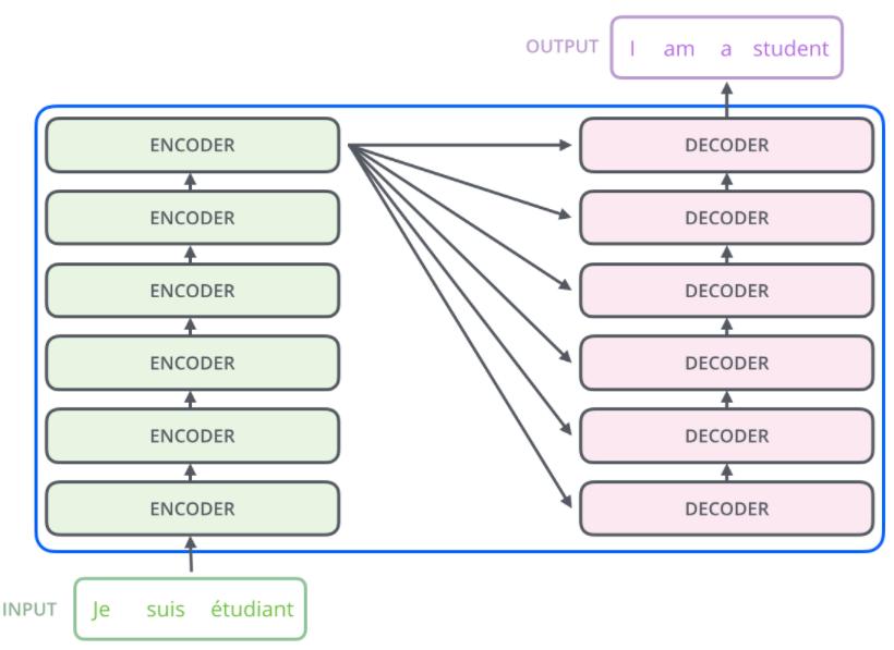 Machine translation 을 수행한다면 Figure 1과 같이 입력 문장이 Transformer 모델에 들어가 번역된 출력 문장이 나오게 될겁니다.