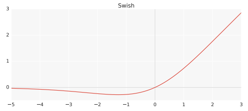 이번 포스트에서 소개해 드릴 내용은 Mish 활성화 함수입니다. 먼저 Mish 함수는 구글에서 발표한 Swish 함수에 기초하고 있고 Swish 함수는 $f(x) = x\cdot sigmoid(\beta x)$로 정의됩니다. 여기서 $\beta$는 훈련 가능한 파라미터로 $\beta=0$이면 identity 함수, $\beta=\infty$면 ReLU가 됩니다. Swish 함수의 모양은 Figure 1과 같은데, ReLU 함수와 같이 unbounded above, bounded below 형태를 가지지만 중요한 차별점은 Swish 함수는 모든 점에서 미분가능하고 단조증가함수가 아니라는 점입니다.