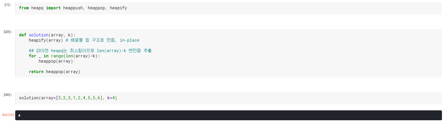 제목 그대로 주어진 배열이 있을 때, 배열의 K 번째 큰 요소를 return하면 되는 문제입니다.