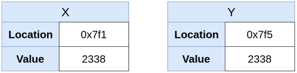 또한, "int y = x"를 수행한다면 Figure 3과 같이 변수 y를 위한 새로운 메모리 공간을 할당합니다.
