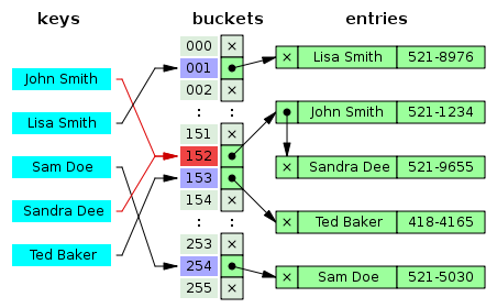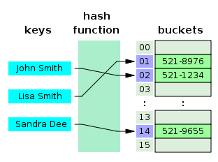 위 그림에서 키인 'John Smith', 'Lisa Smith', 'Sandra Dee'는 해시 함수에 의해 특정 인덱스로 매핑됩니다. 이렇게 해시 함수를 이용해서 해당 키 값에 대한 인덱스를 구하는 것을 해싱 (Hashing)이라고 합니다. 그렇다면 해시 함수에는 어떤 함수가 사용될까요?