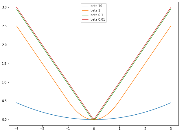 마찬가지로 Smooth L1 loss의 $\beta$가 0.01, 0.1, 1, 10 으로 변화할 때의 양상을 살펴보겠습니다.