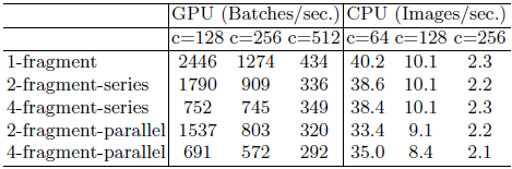 이를 확인하기 위해 1 x 1 convolution을 다양한 fragment 전략으로 설계해서 10층을 쌓고 속도를 측정해봅니다. 4-fragment 로 설계했을 시, 1-fragment에 비해 속도가 감소한 것을 볼 수 있습니다.