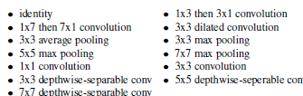 위의 그림은 NASNet의 가장 좋은 performance를 보이는 cell입니다. Convolution의 경우 거의 depthwise separable convolution (sep)이 선택된 것을 볼 수 있고 마지막 combine연산은 모두 element-wise add 연산이 선택된 것을 볼 수 있습니다.