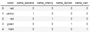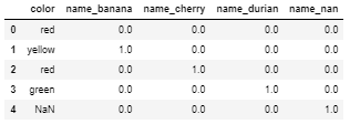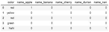 pd.get_dummies(fruit, columns=['name'], dummy_na=True)