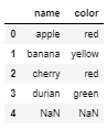 fruit = pd.DataFrame({'name':['apple', 'banana', 'cherry', 'durian', np.nan],