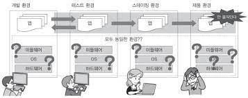 기존의 일반적인 시스템 개발 흐름 상에서는 각 환경마다 미들웨어, 라이브러리의 버젼이 다르거나 인프라 환경이 다르기 때문에 개발 환경이나 테스트 환경에서 올바르게 작동해도 제품 실제 환경에서는 정상적으로 작동하지 않는 경우가 있습니다.