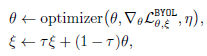 Target network의 $xi$의 moving update를 위한 $\tau$는 0.996으로부터 시작하여 Equation 7과 같이 iteration에 따라 1까지 증가합니다. Equation 7의 $k$는 현재 training step, $K$는 전체 training step입니다. 또한, 배치 사이즈를 4096으로 하여 512개의 TPU로 학습시켰다고 합니다.